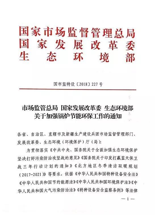 為貫徹落實(shí)《中共中央、國務(wù)院關(guān)于全面加強(qiáng)生態(tài)環(huán)境保護(hù)堅(jiān)決打好污染防治攻堅(jiān)戰(zhàn)的意見》《國務(wù)院關(guān)于印發(fā)打贏藍(lán)天保衛(wèi)戰(zhàn)三年行動(dòng)計(jì)劃的通知》《北方地區(qū)冬季清潔取暖規(guī)劃(2017-2021)》等要求,依據(jù)《中華人民共和國特種設(shè)備安全法》《中華人民共和國節(jié)約能源法》《中華人民共和國環(huán)境保護(hù)法》《中華人民共和國大氣污染防治法》《特種設(shè)備安全監(jiān)察條例》等法律法規(guī)的規(guī)定,現(xiàn)就加強(qiáng)鍋爐節(jié)能環(huán)保工作有關(guān)事項(xiàng)通知如下。